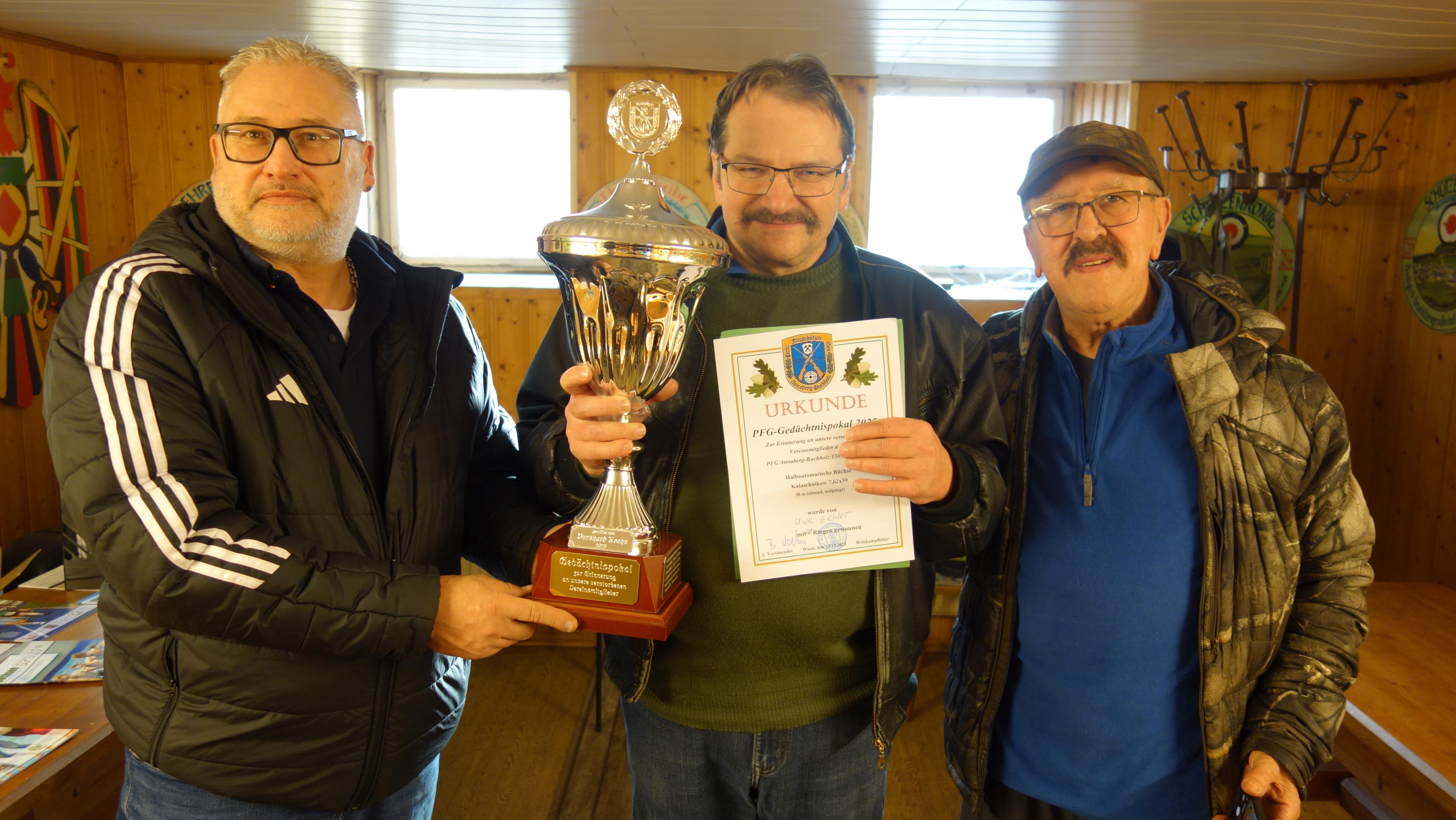 Weihnachtsgans und -pokalschießen Disziplin Gans: 1 Schuß KK-Gewehr auf 50 Meter auf abgedeckter Scheibe Disziplin Pokal: Kurzwaffen aller Kaliber (10 Schuss) Gedächtnispokal (Wanderpokal) Disziplin: 50m, 5 Schuss mit Kalaschnikow (Waffe und Munition werden zur Verfügung gestellt) anschließend Weihnachtsfeier Wettkampfleiter: Burkhard Koehn, Sven Rust
